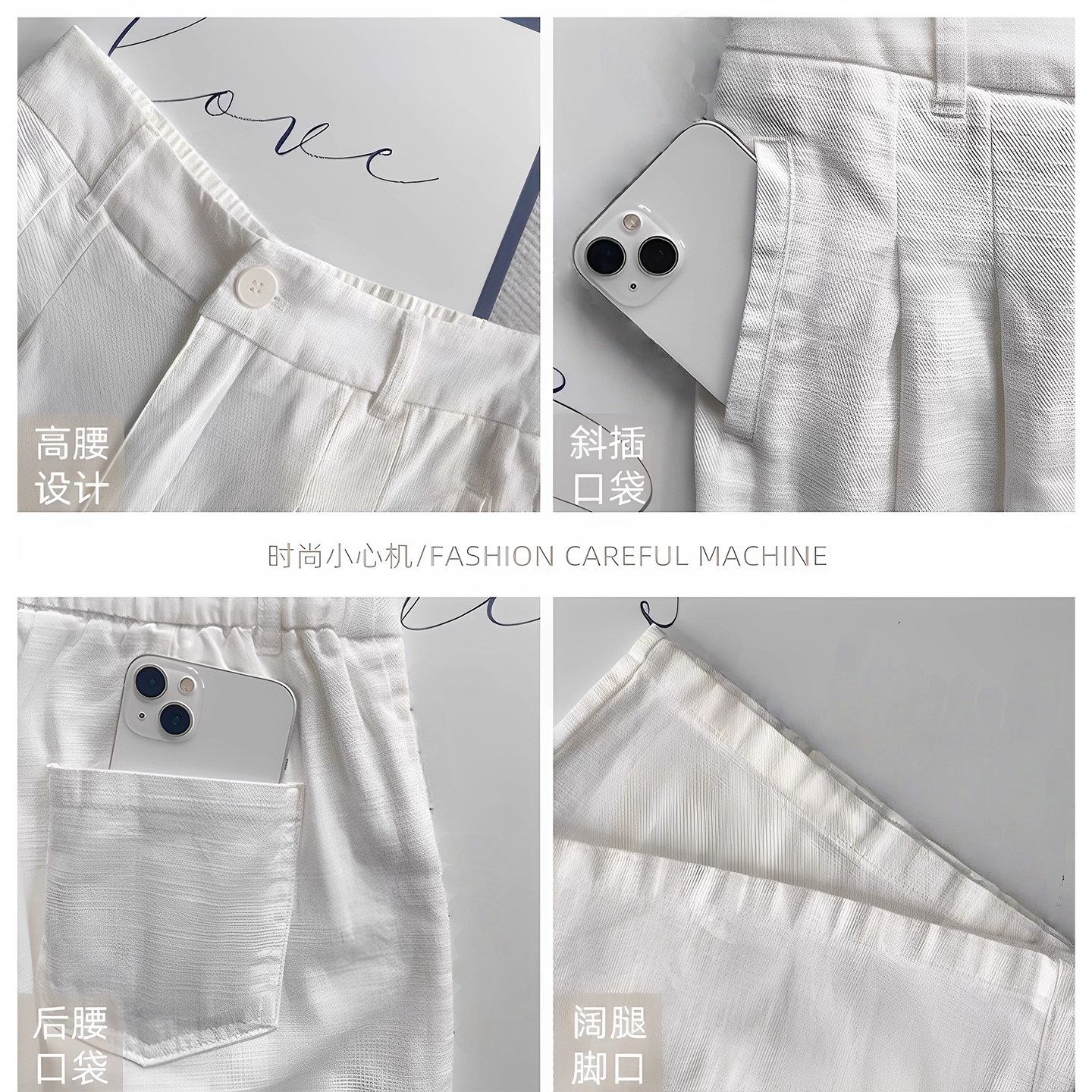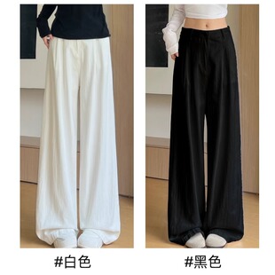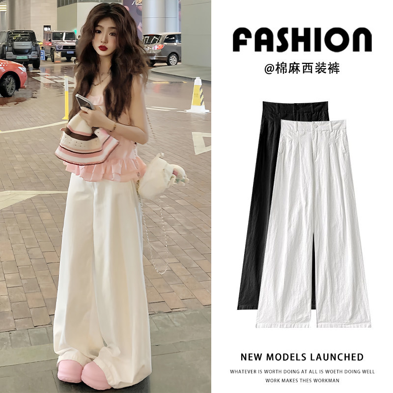 拖地裤 白色裤 高腰显瘦宽松休闲慵懒风垂坠感棉麻西装 新款 子女夏季