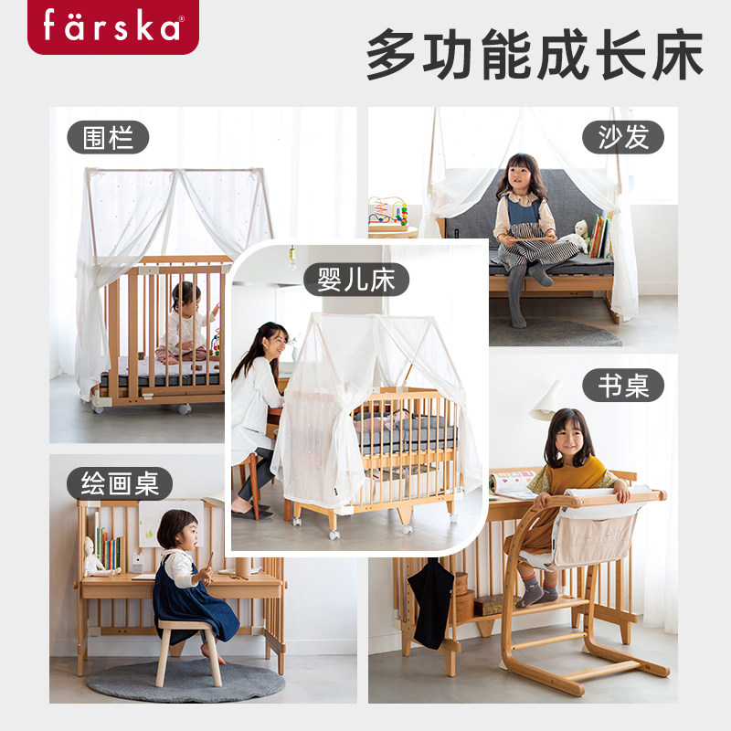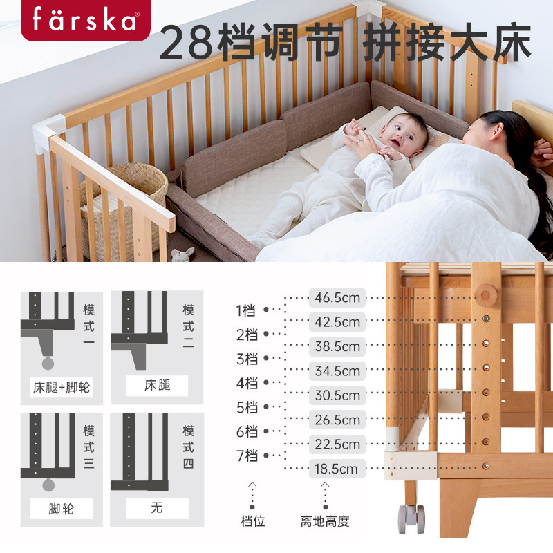 Farska多功能婴儿床可拼接五合一大床新生儿实木成长型宝宝床边床