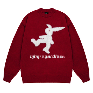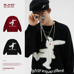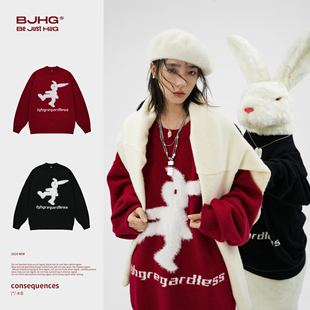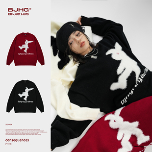 潮牌运动针织衫 BJHG不计后果美式 内搭新款 冬季 女 情侣兔子毛衣男款