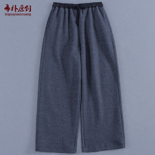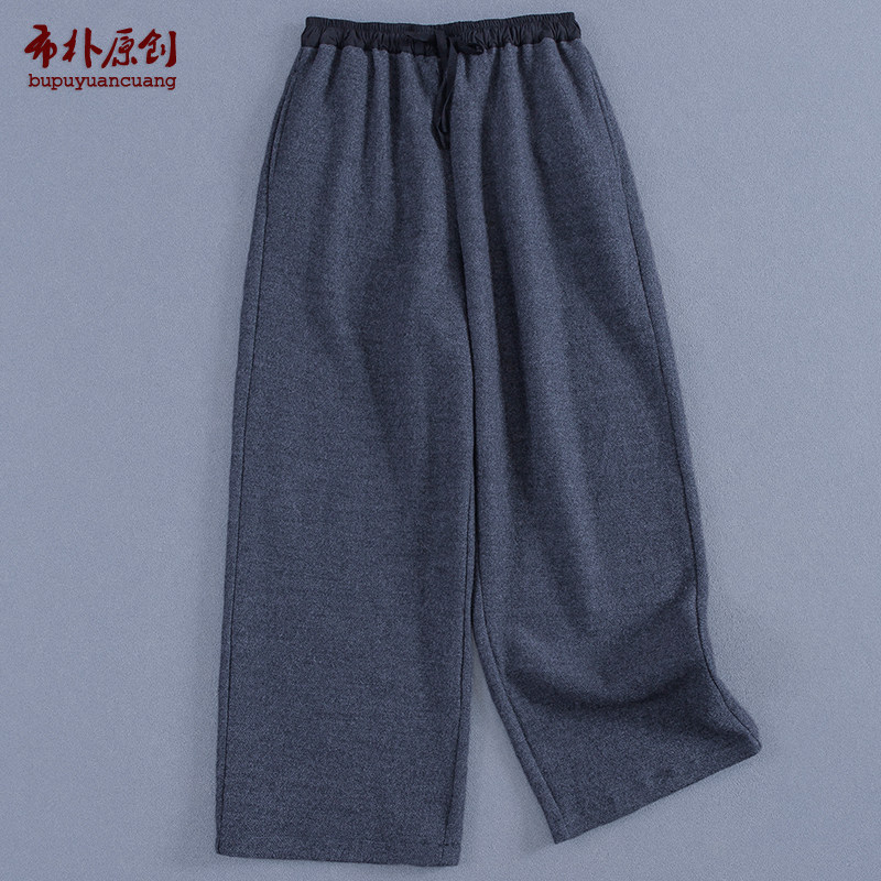 布朴壹旧2026秋冬新款 灰色羊毛松紧腰宽松保暖软糯厚九分萝卜女裤