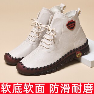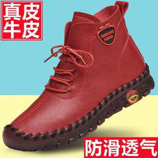 真皮妈妈皮鞋 春季 中老年人舒适软底软皮防滑奶奶短靴 2026新款 女鞋