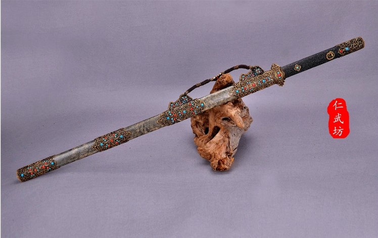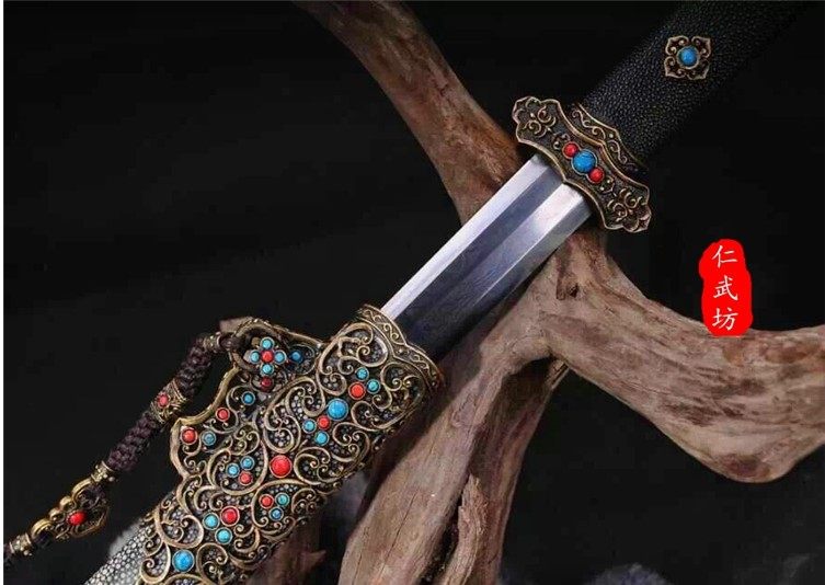 精品宝剑百炼花纹钢珍珠鱼皮镂空八面汉剑唐剑龙泉刀剑长剑未开刃