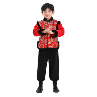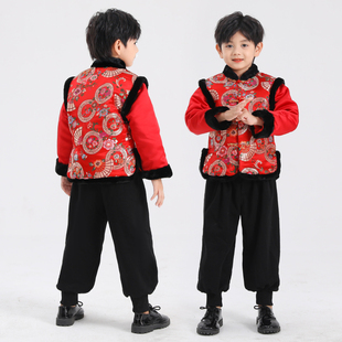 儿童唐装 加绒加厚演出服表演服新年演出少爷服 男童汉服冬季