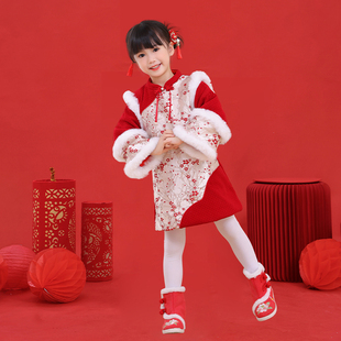 汉服男女童2025冬款 旦演出服宝宝拜年服新年过节喜庆服 加绒加厚元