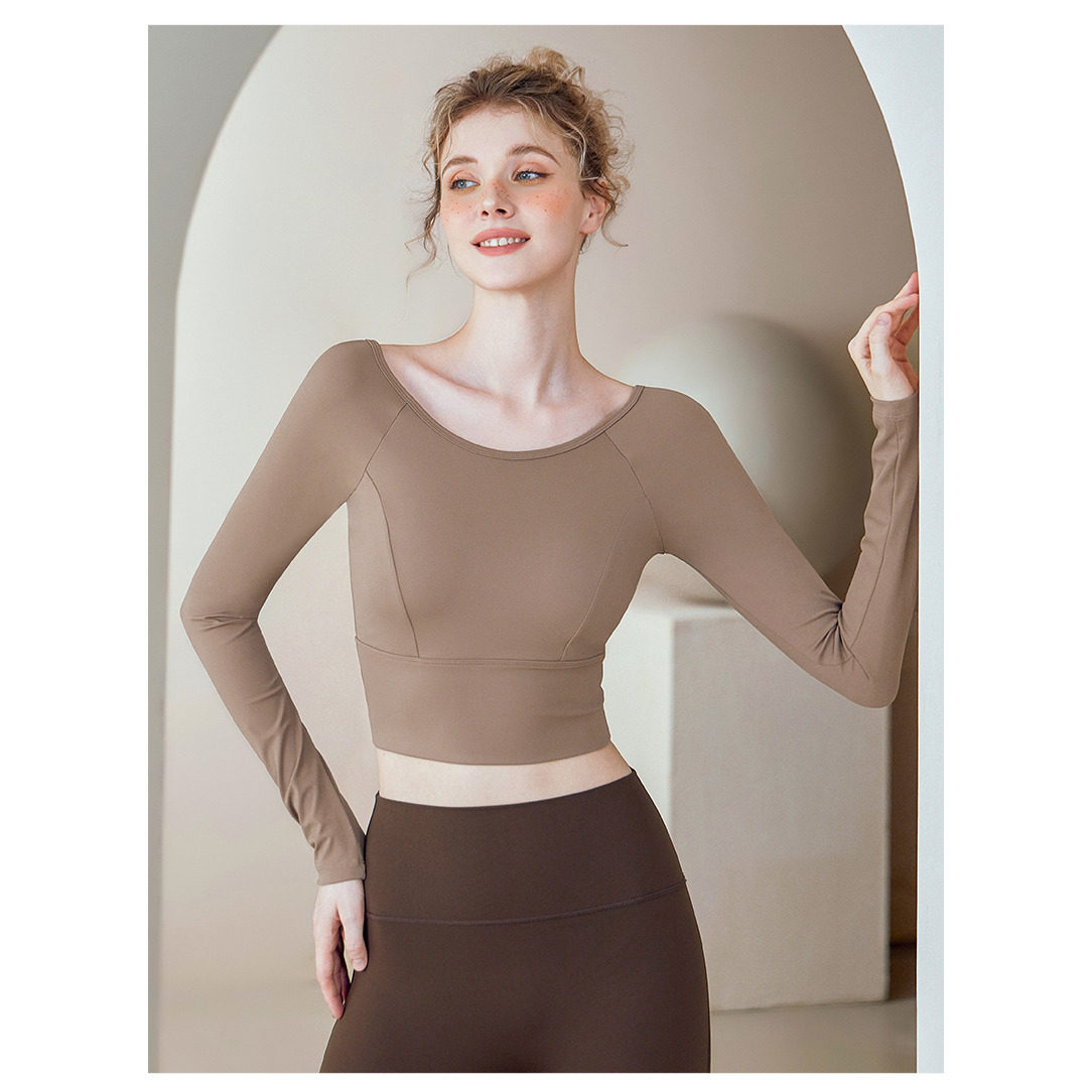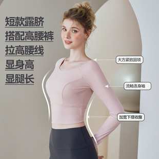 短袖 带胸垫网纱交叉美背t恤运动健身训练服上衣863 长袖