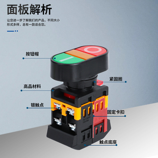 按钮开关按压式 11bn自锁电源平头启动停止圆形点动ZS 自复位la38