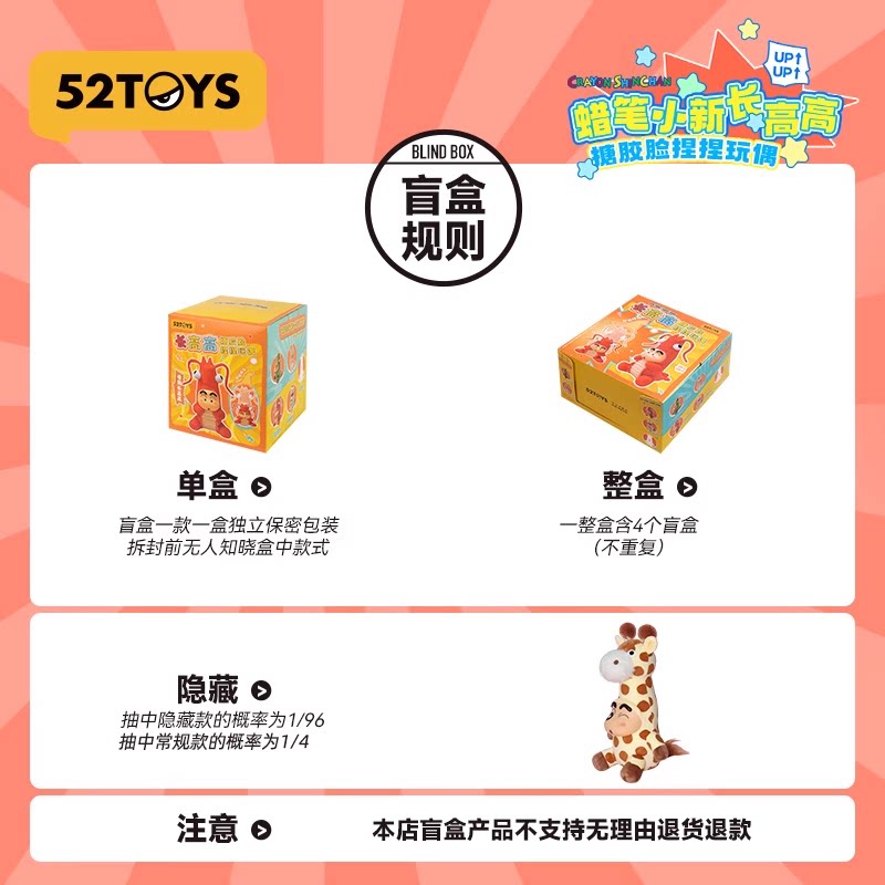 52TOYS蜡笔小新长高高系列搪胶脸毛绒盲盒手办潮玩玩具摆件礼物
