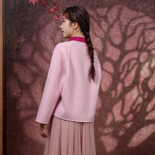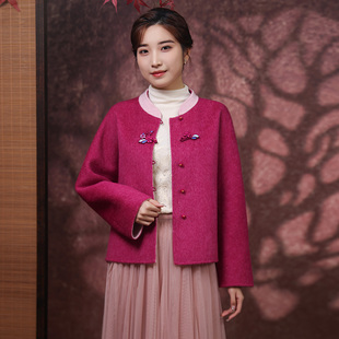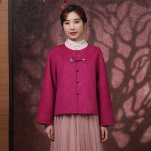 蝶恋秋冬复古国风双面呢绵羊毛短外套崔万志新中式 宽松毛呢大衣