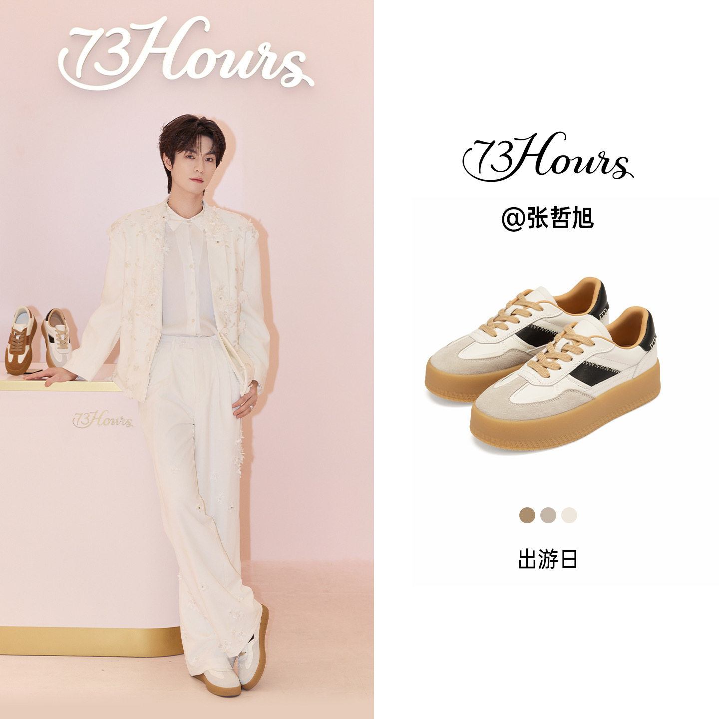 73hours女鞋 复古休闲鞋 出游日春季 厚底增高德训鞋 新款 张哲旭同款