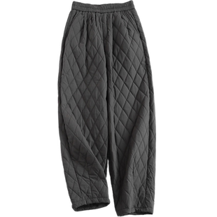 H685 女棉裤 菱格绗缝加厚松紧腰遮肉慵懒松弛感2024冬季 夹棉休闲裤