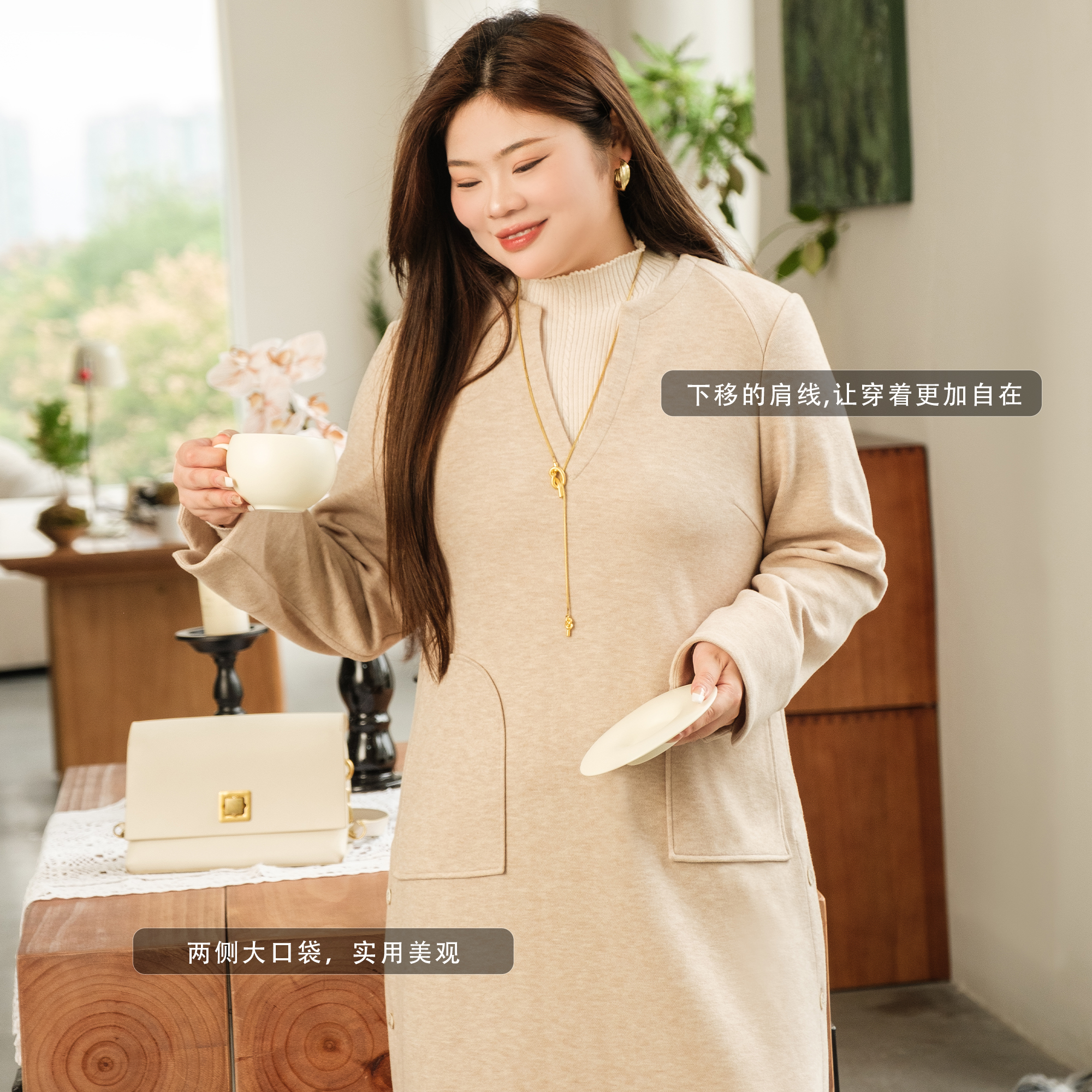 新款 女装 美丽客栈高级风秋冬针织连衣裙大码 卫衣裙女 温柔秋色