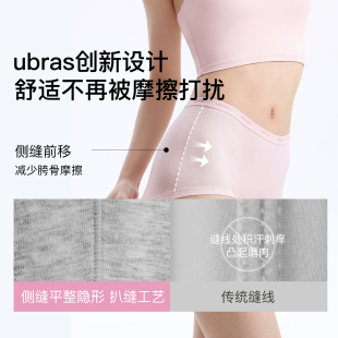 短裤 ubras平角纯棉内裤 女15A抗菌加长裆字母织带包臀四角女士大码