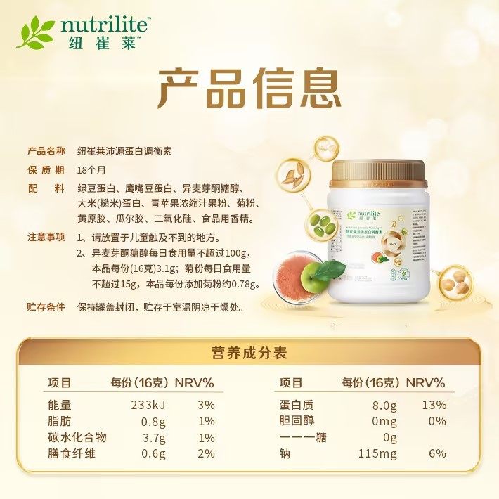 官网正品 安利纽崔莱沛源蛋白调衡素 蛋白质粉营养粉平衡代谢460g