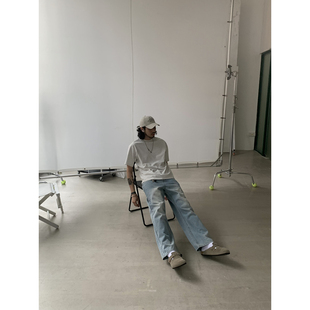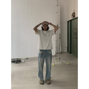 子潮 男女cleanfit裤 INKNOTS美式 复古vintage水洗直筒浅蓝色牛仔裤