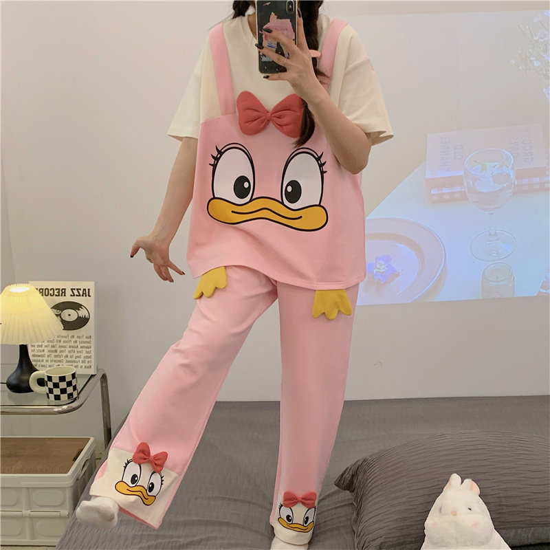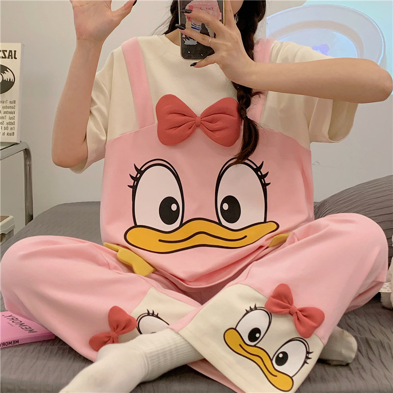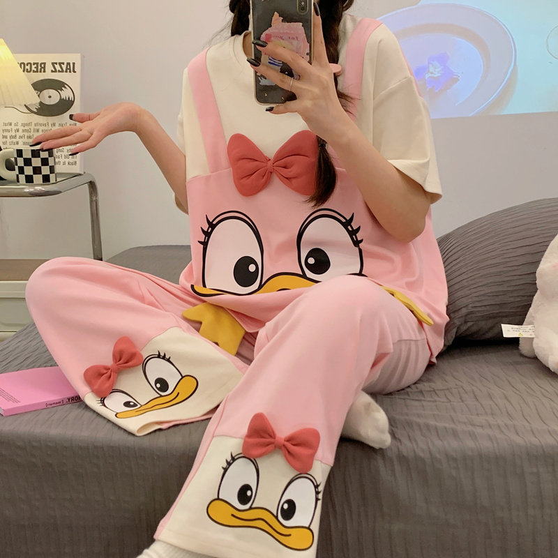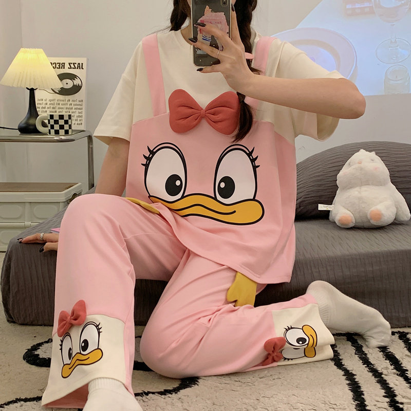 2026新款 长裤 纯棉套装 中大童夏款 家居服 假两件睡衣女夏季 睡裤 短袖