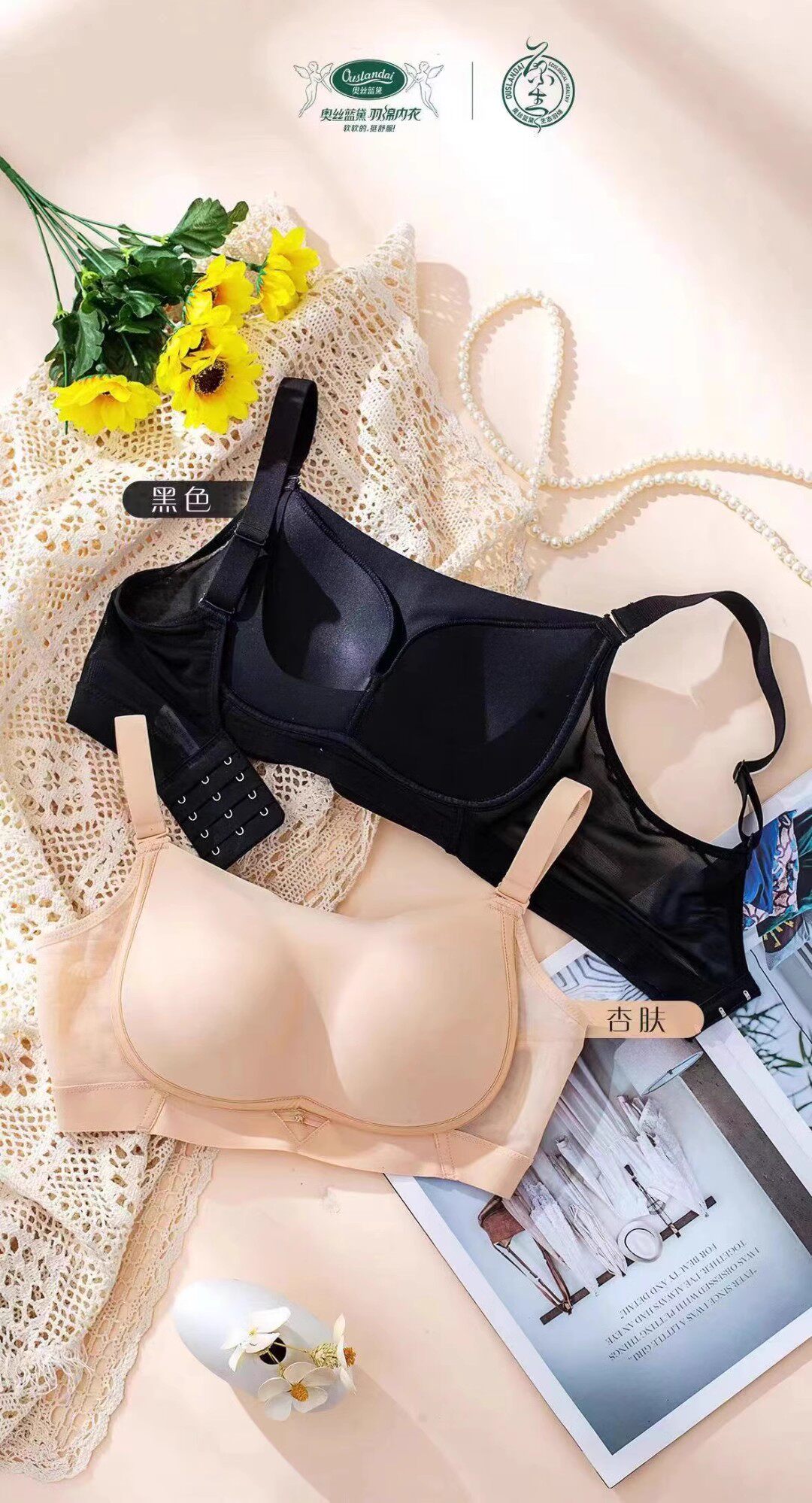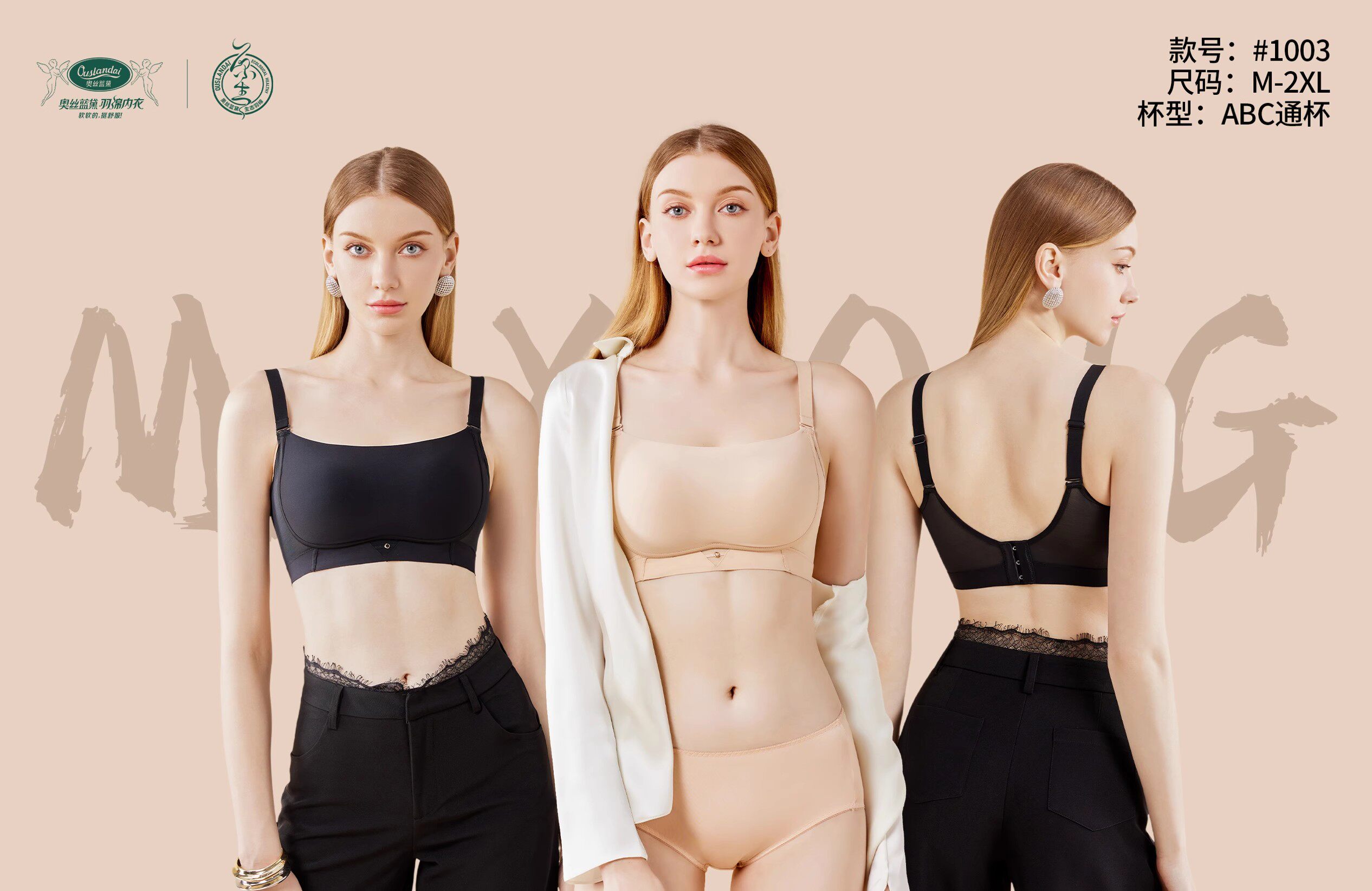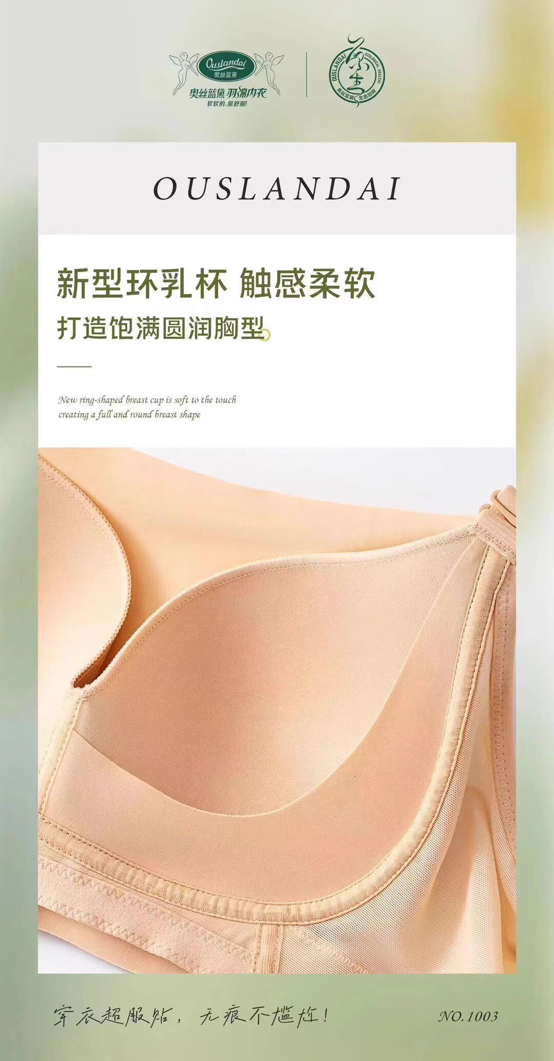 奥丝蓝黛1003通杯薄款 抹胸无钢圈收副乳肩带可拆卸内衣调整型文胸