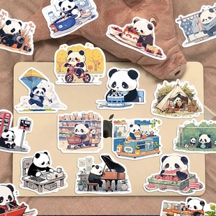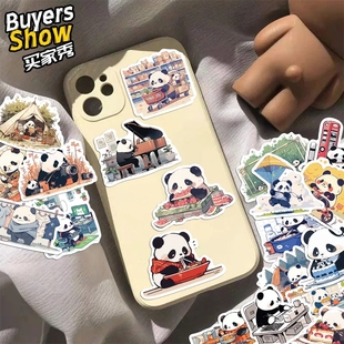 50张可爱熊猫 饰贴画 一天贴纸卡通自粘笔记本电脑手账本diy装