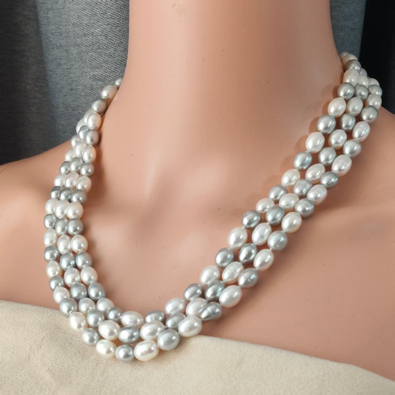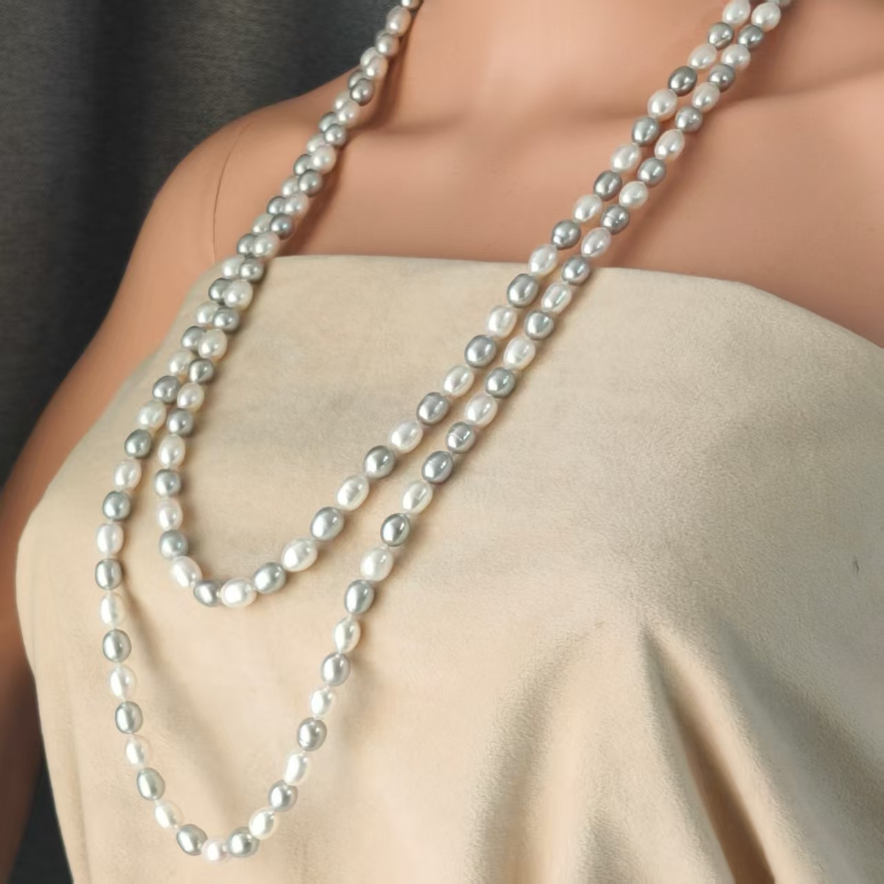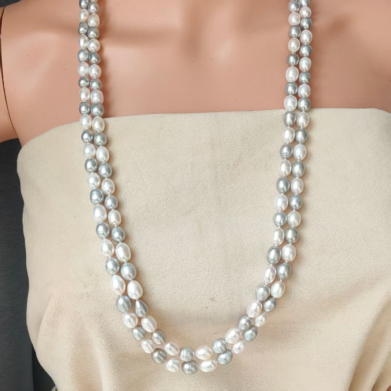 异形巴洛克珍珠白灰混彩1.6米毛衣链长链 欧美大气 8MM极强光
