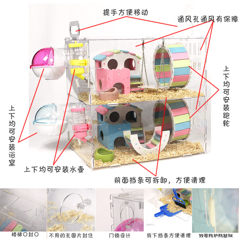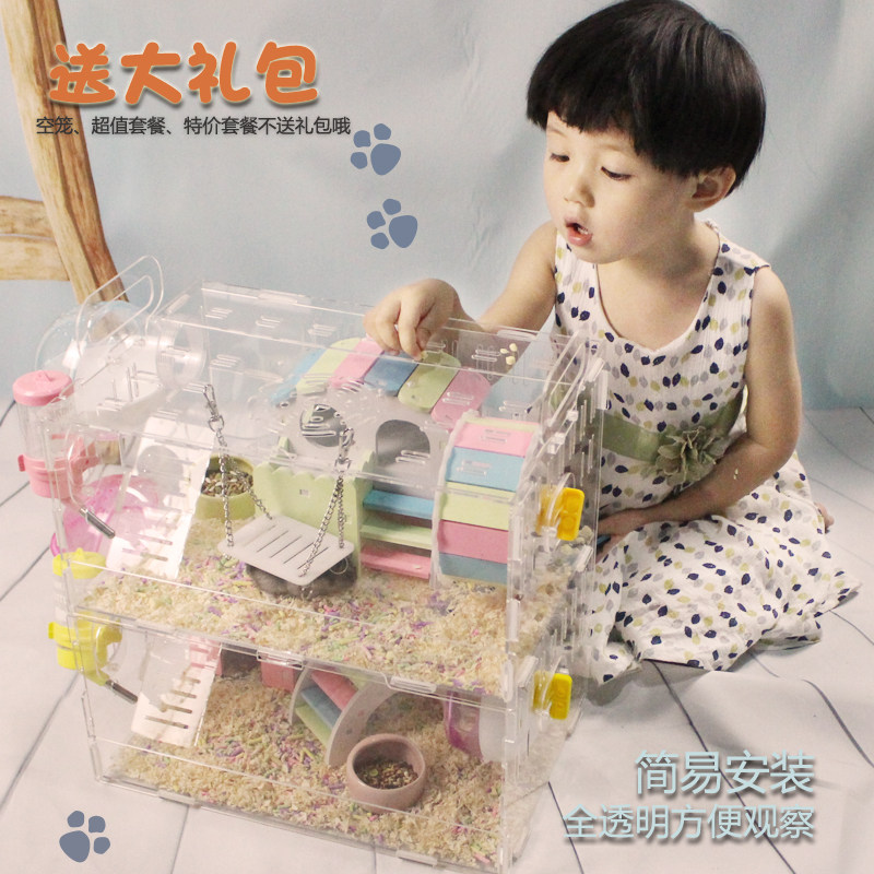仓鼠笼子亚克力透明单双三层豪华超熊类鼠双别墅宝宝城堡套装 包邮