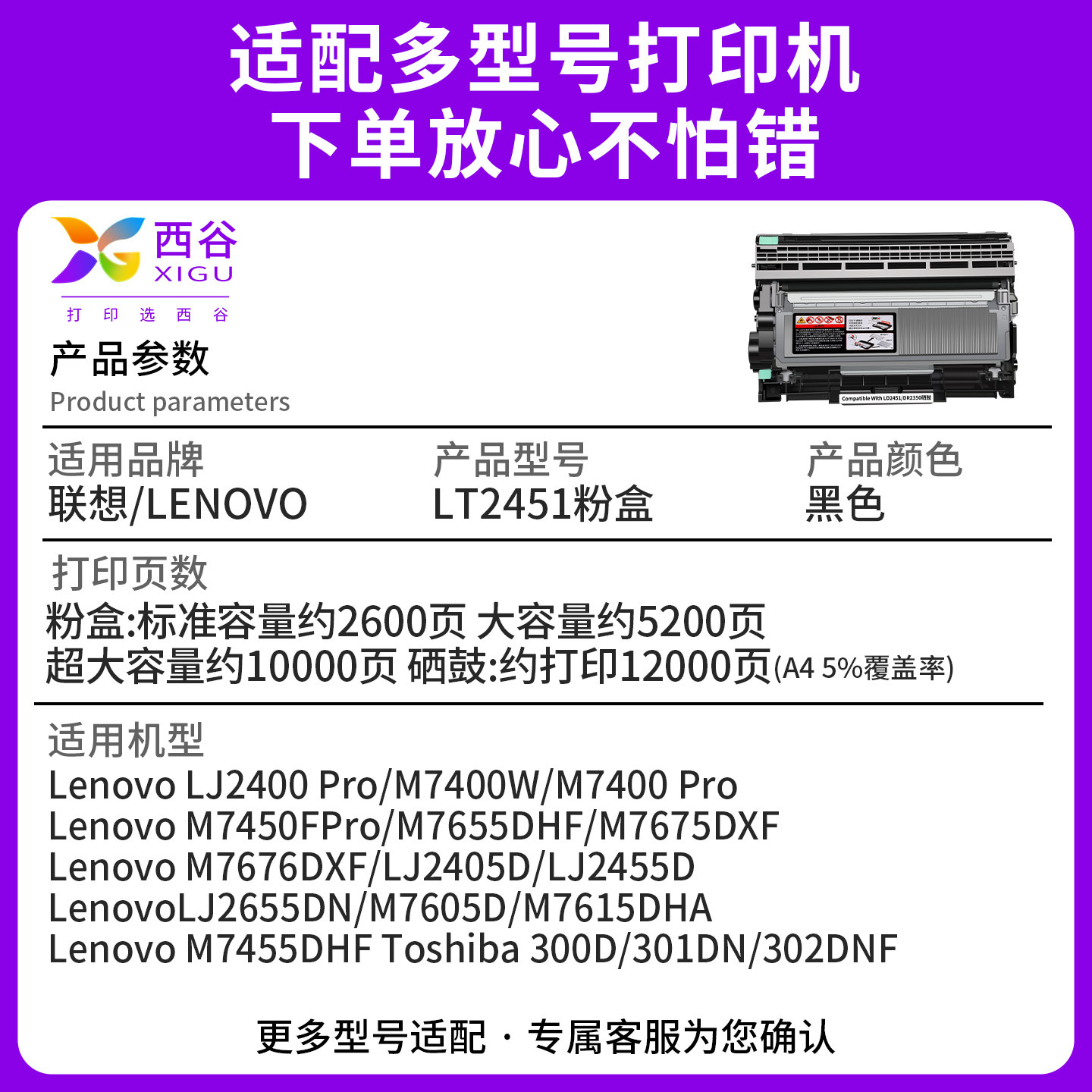 顺丰速发 M7455 西谷适用联想M7400Pro M7655 M2451硒鼓|高清输出·文档清晰不卡纸 M7605D