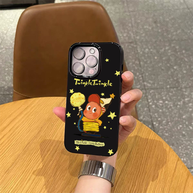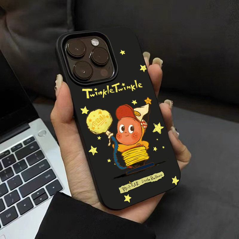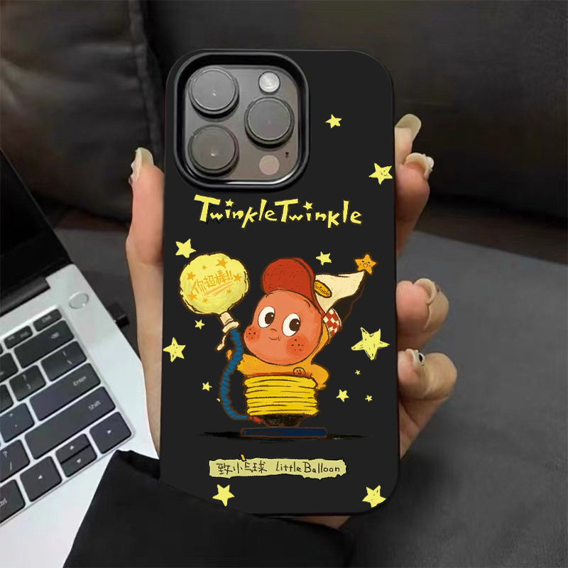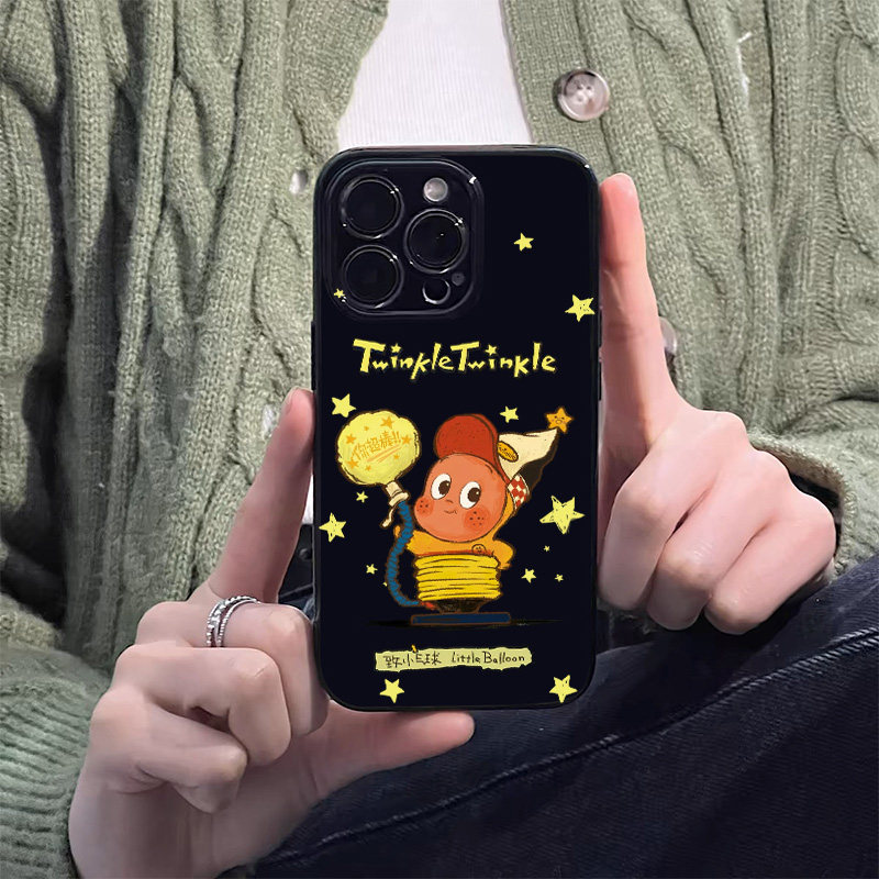 12全包11软 13小众不撞款 ins可爱卡通气球星星人手机壳适用苹果17promax新款 iPhone16亮黑色15硅胶14磨砂薄款