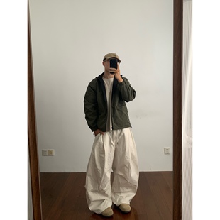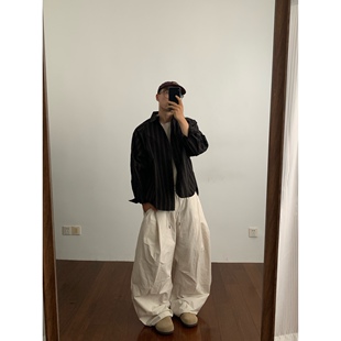 长裤 Daily 百搭纯色水洗宽松百搭伞兵裤 日系褶皱感灯笼裤 松紧腰