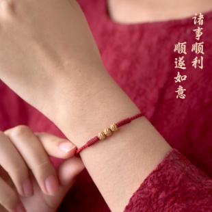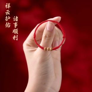 庆祥泰真品朱砂手串女款 官方旗舰店天然和田玉足金黄金手链女 正品