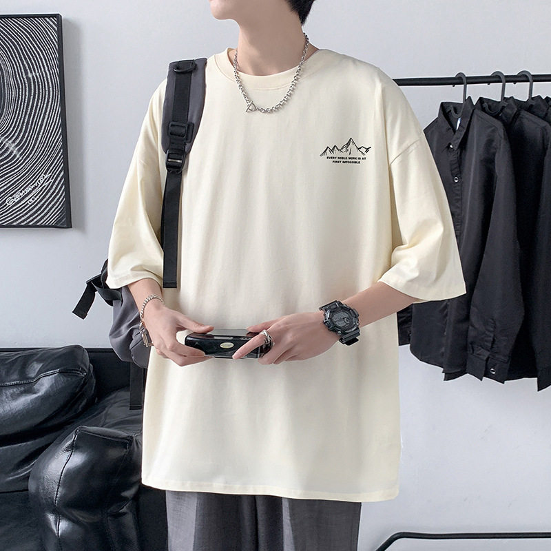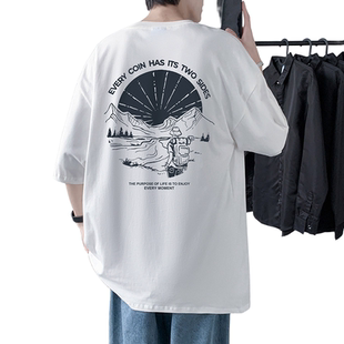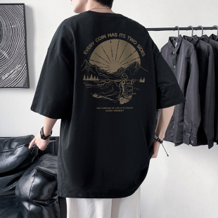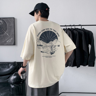 男式 新款 短袖 上韩版 体恤 T恤纯棉圆领印花潮牌男装 220克宽松大码