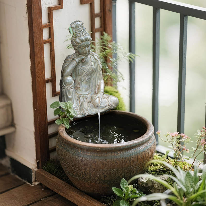 鱼缸造景流水景观瀑布流水循环陶罐户外庭院鱼池水缸过滤摆件全套