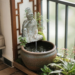 陶瓷罐开口循环流水配件生态鱼缸古法庭院花园造景装 饰品摆件过滤