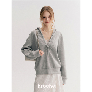 褶皱抽绳 25aw 棉感空气层宽松大V领连帽卫衣 Kroche 卢昱晓同款