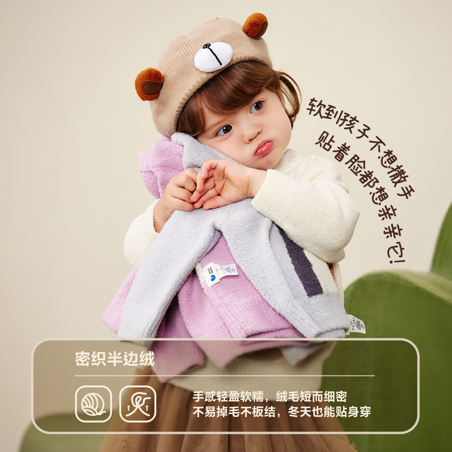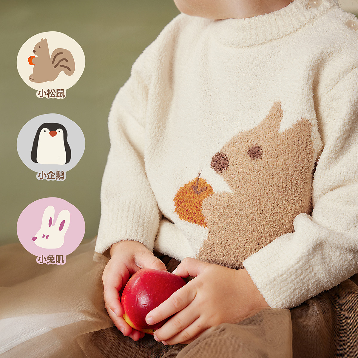 迷你巴拉巴拉男女童宝宝半边绒提花图案毛衣2025冬新品 贴贴毛衣