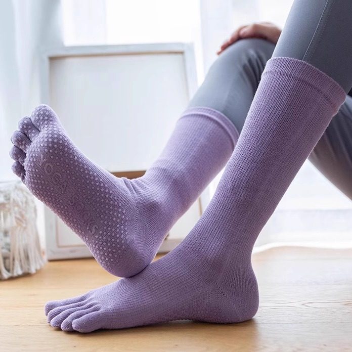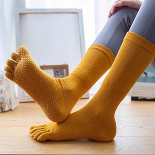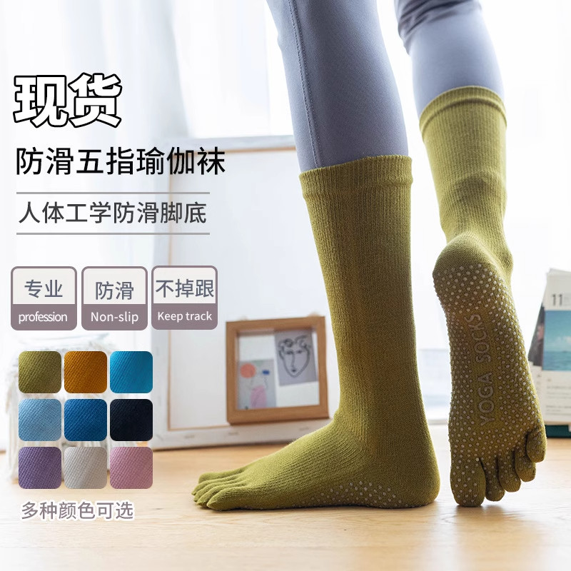 日本代购 运动高端瑜伽袜子女防滑透气专业普拉提中筒袜健身五指袜