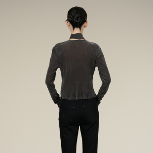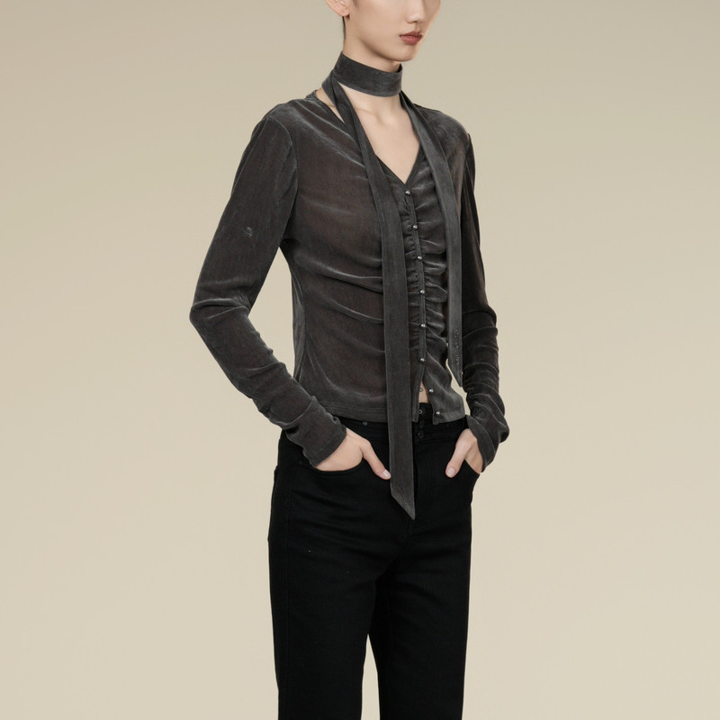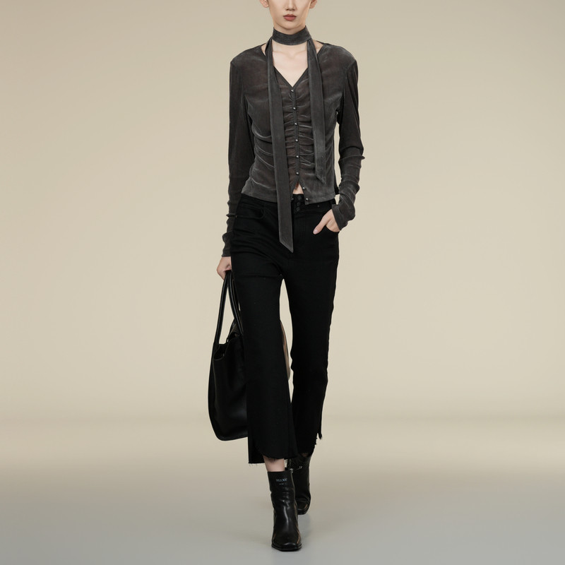 T显瘦V领套头衫 抽褶优雅长袖 女XK401013A281 法式 XG雪歌2025冬新款