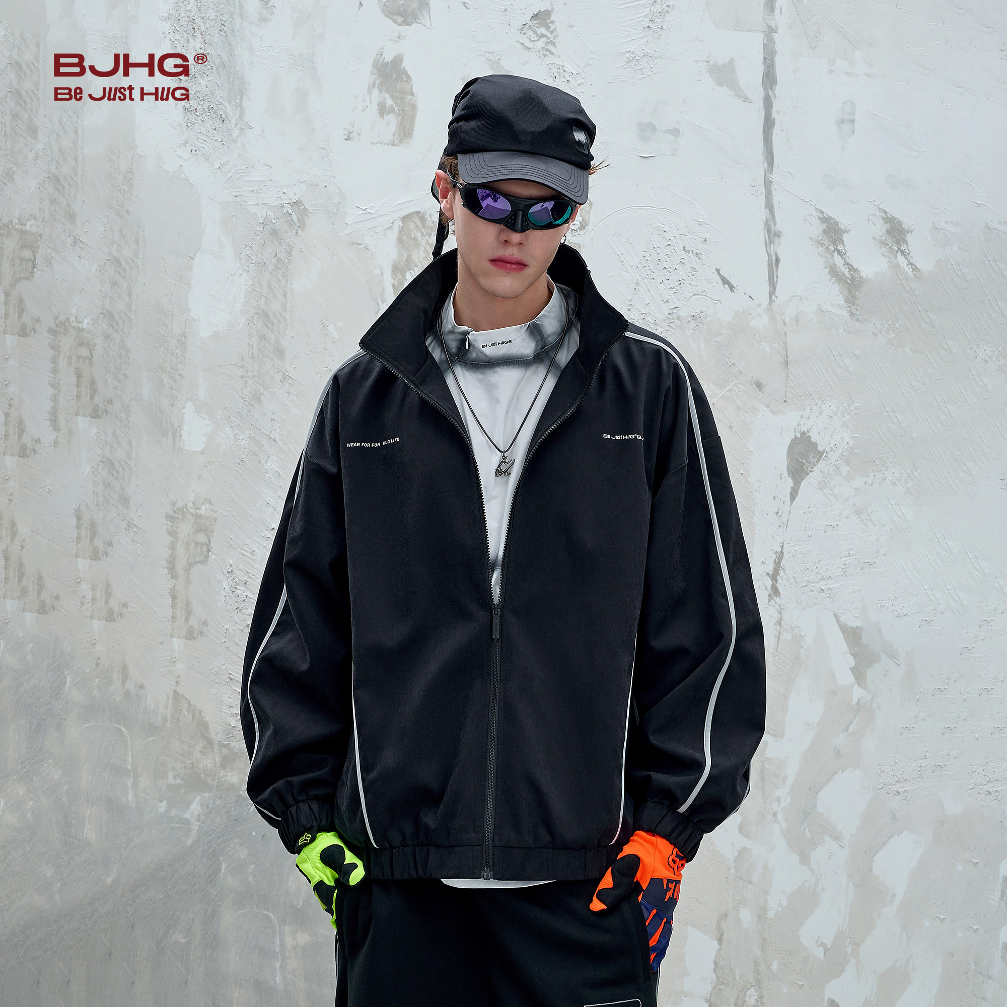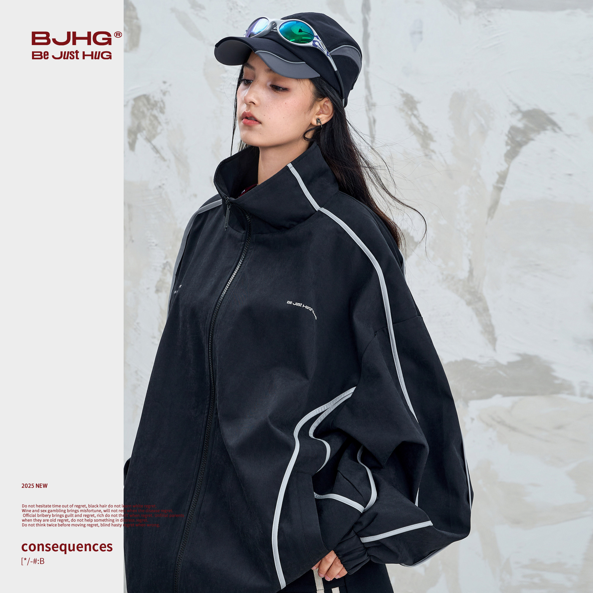 BJHG不计后果复古运动外套男款 立领夹克柔丝绒休闲外套女 秋冬美式