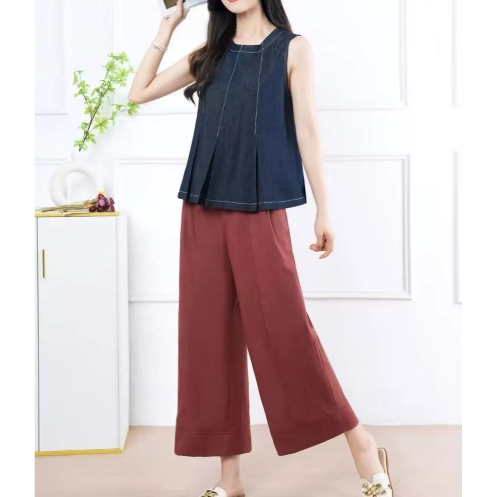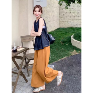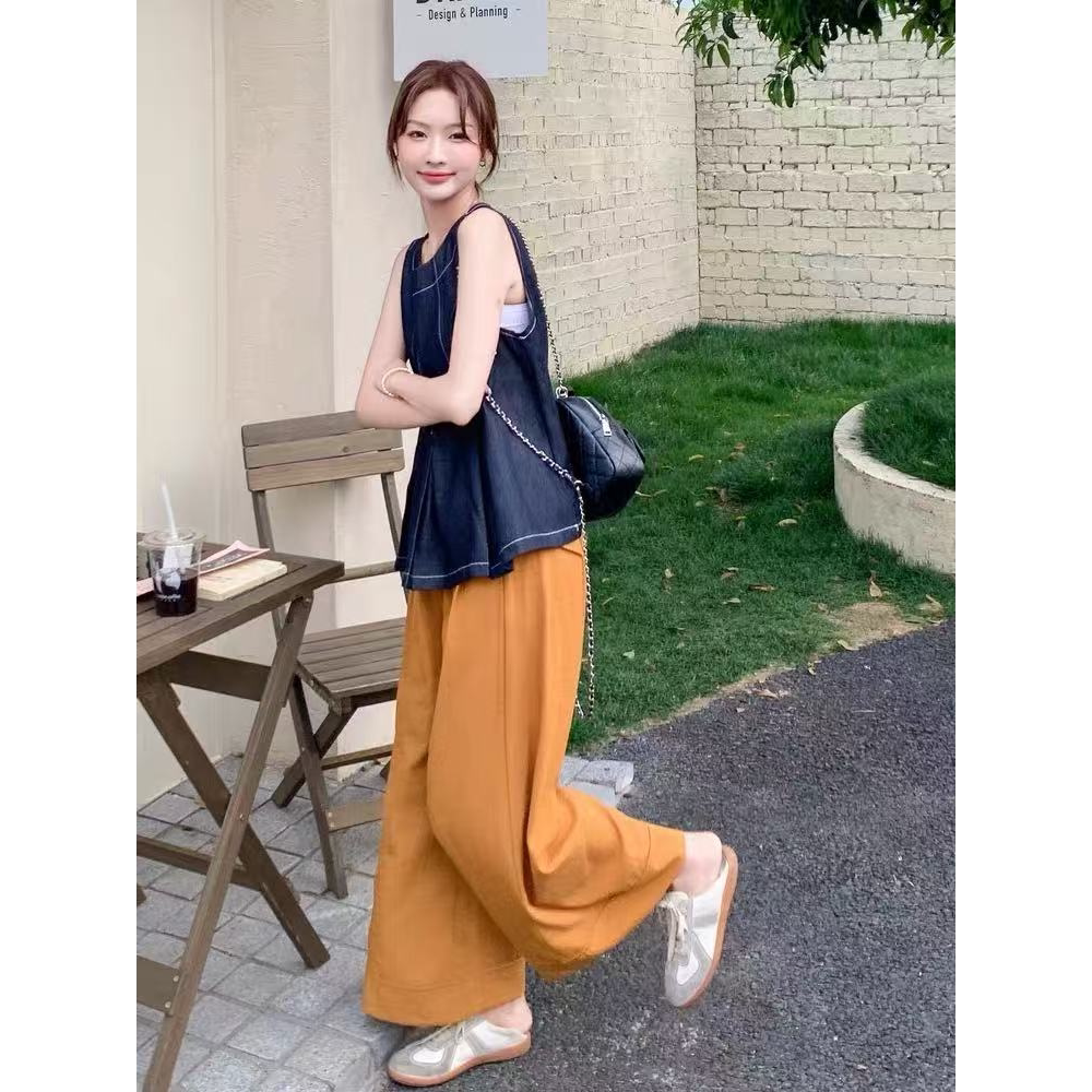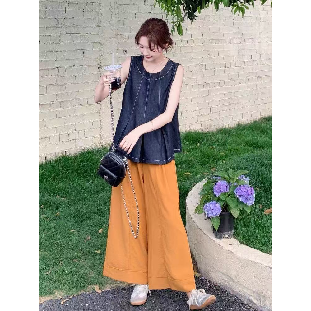 时尚 韩版 宽松无袖 牛仔背心 两件套 B099 高腰阔腿裤 夏新款
