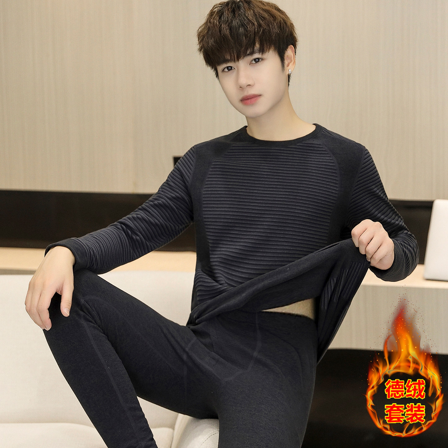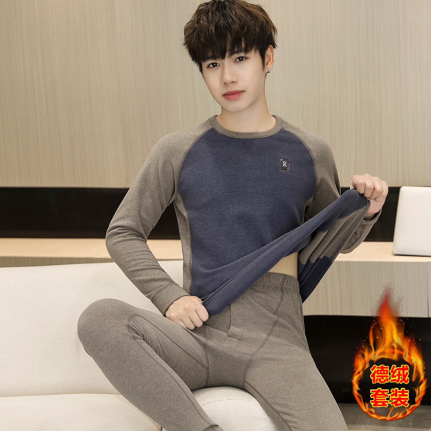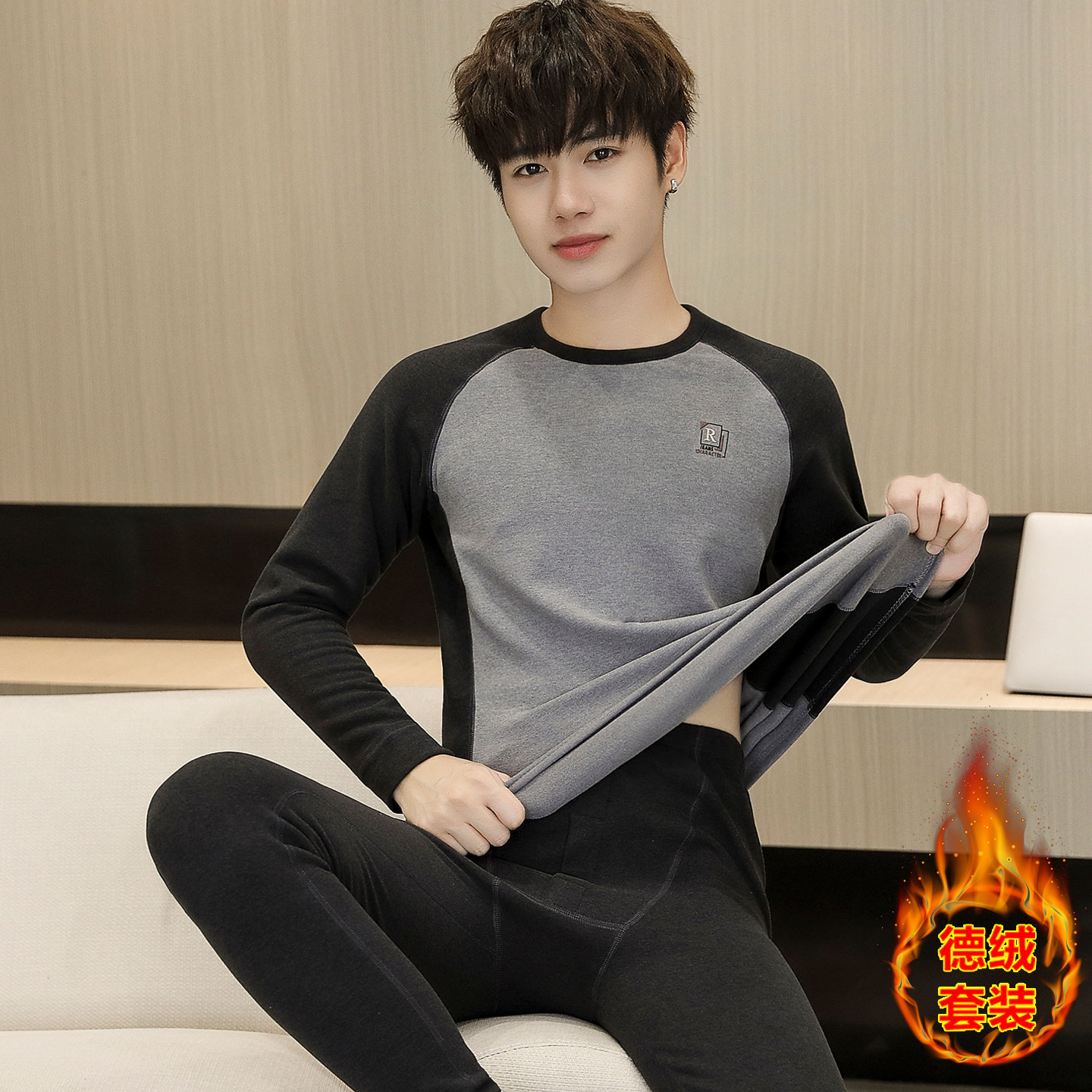 新款 男童德绒棉毛衫 高中初中学生大童保暖内衣 套装 青少年秋衣秋裤