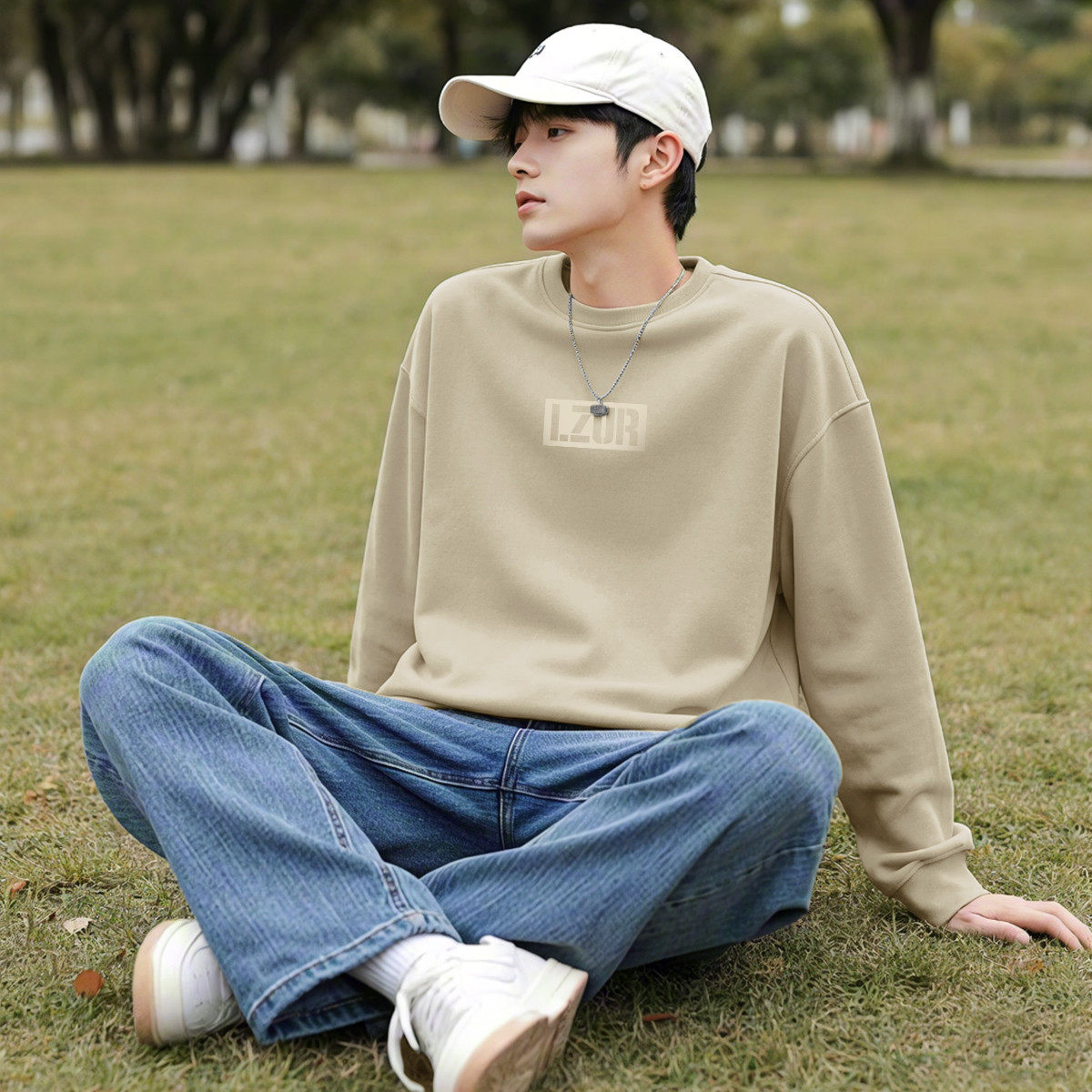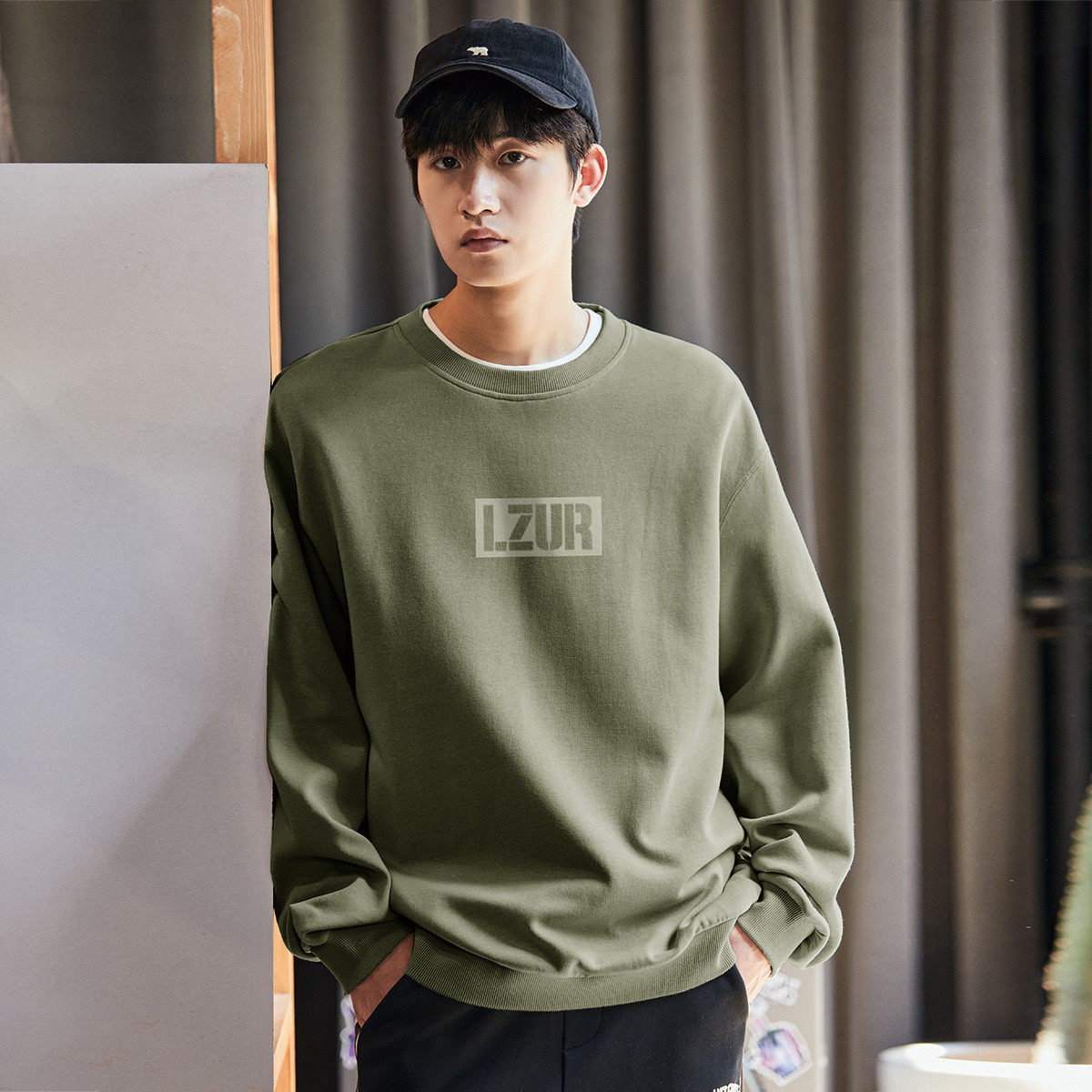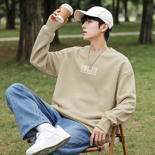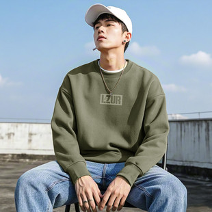 男前片厚板印圆领卫衣 卫衣男休闲卫衣男款 唐狮2025年春秋款 男士