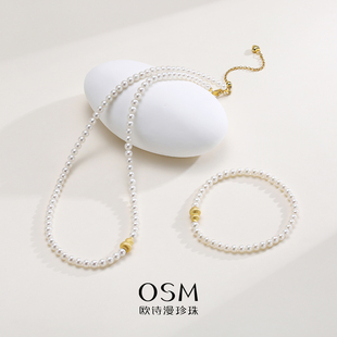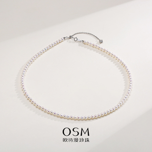 欧诗漫珠宝珍珠项链白色925银小米珠福粒 李佳琦直播间