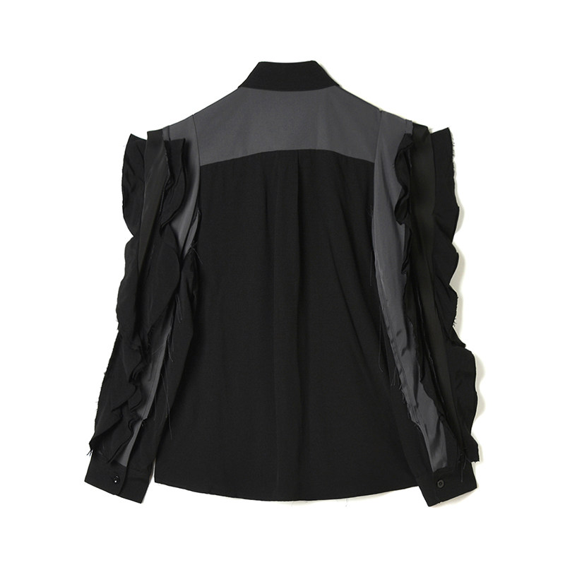 气质内搭女叠穿背心打底百搭 衬衫 法式 V领木耳花边丝滑缎面无袖