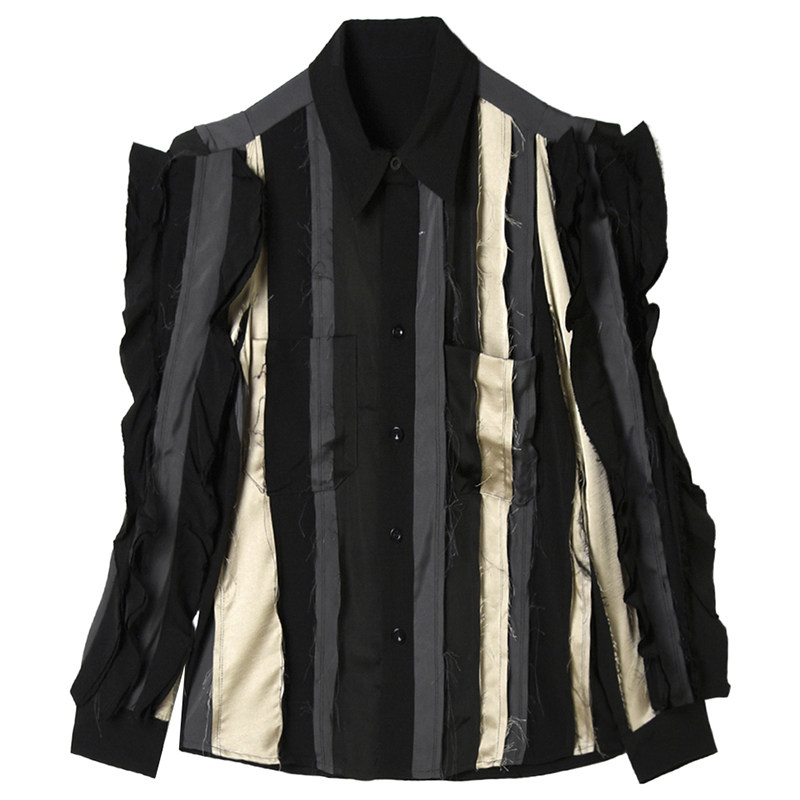 女微透防晒衬衣肌理慵懒气质上衣 衬衫 pusumede乔妹同款 条纹长袖