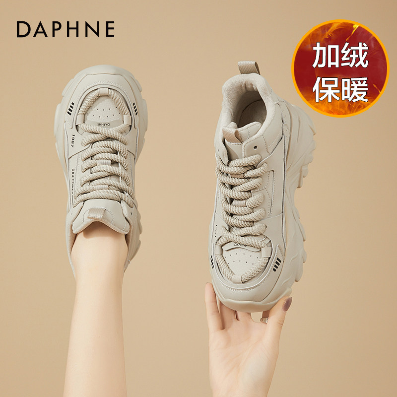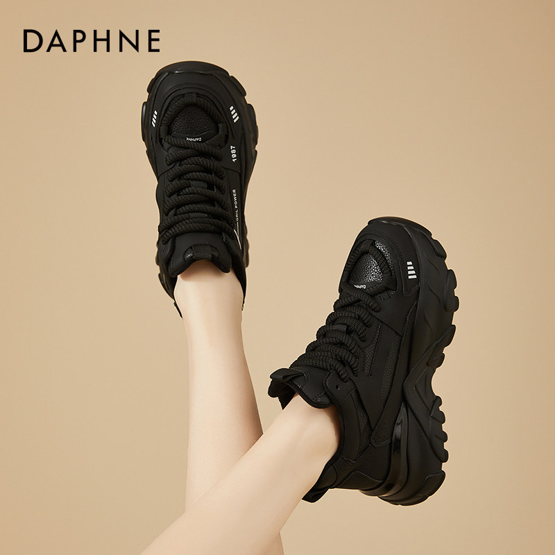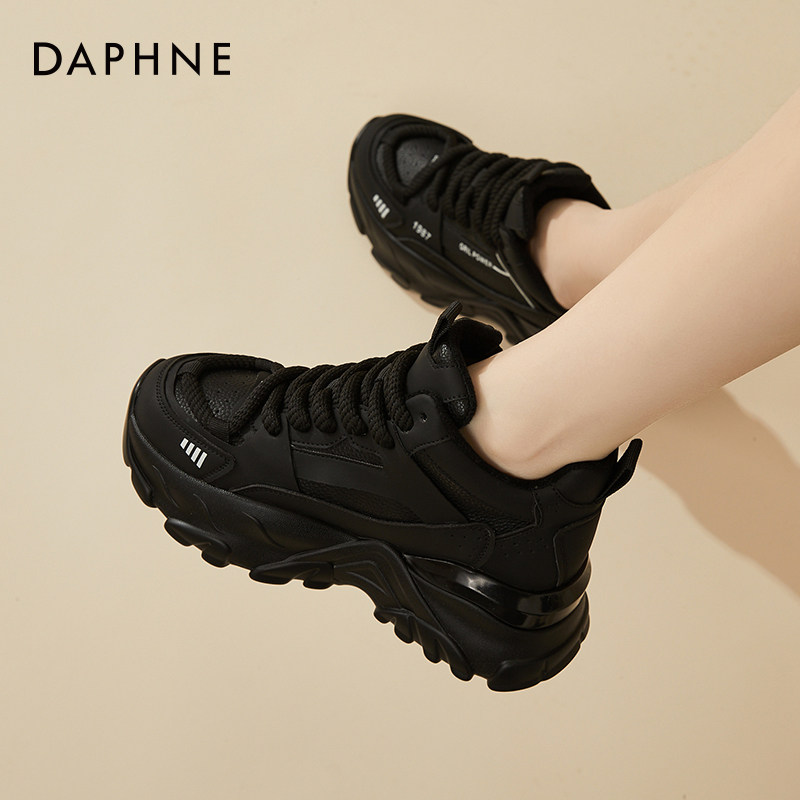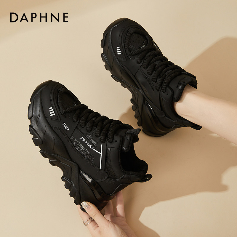 2025年新款 厚底松糕黑色女鞋 冬季 棉鞋 达芙妮加绒老爹鞋 运动鞋 女款
