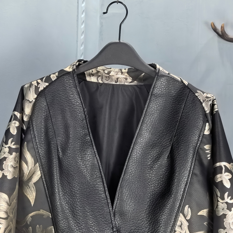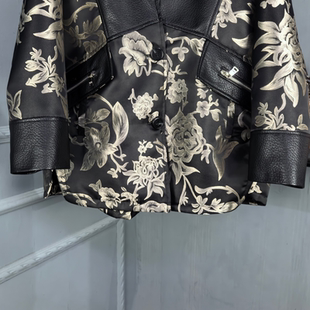 宽松时尚 真皮绵羊皮皮衣女中长款 印花风衣斗篷百搭 新款 2026秋季