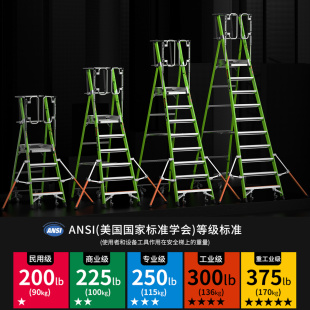 雷都捷特小巨人梯子玻璃钢绝缘平台梯仓库理货可移动折叠安全笼梯