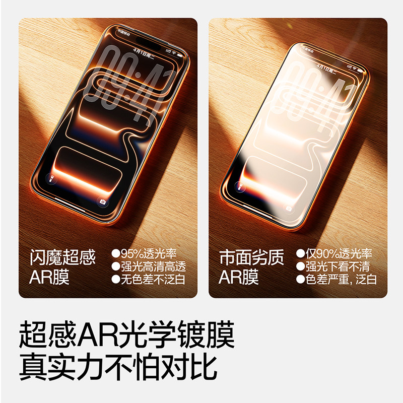 闪魔AR康宁膜抗反射增透适用苹果17ProMax钢化膜iPhone16Pro无尘仓15手机贴膜保护全屏高清 美国康宁授权