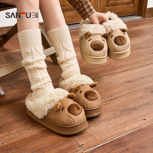 厚底加绒孕妇棉拖鞋 秋冬季 女外穿女2025新款 羊羔毛绒包头毛毛拖鞋