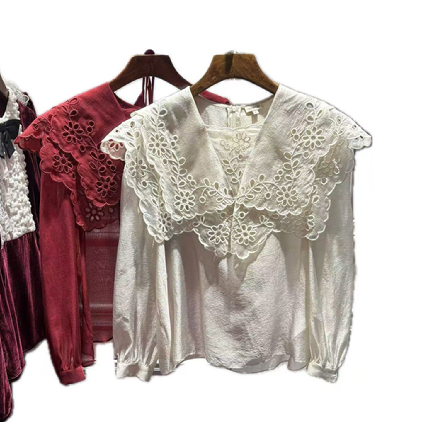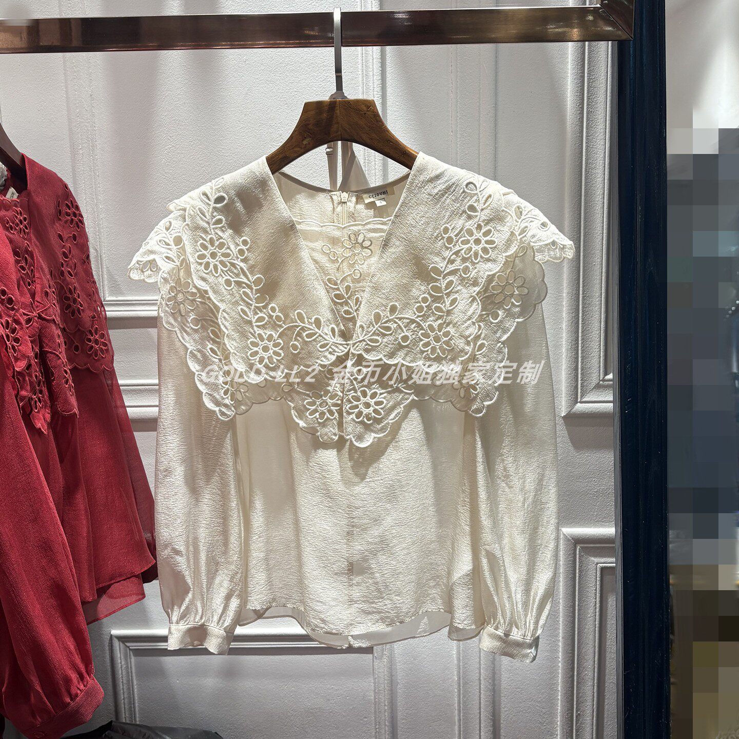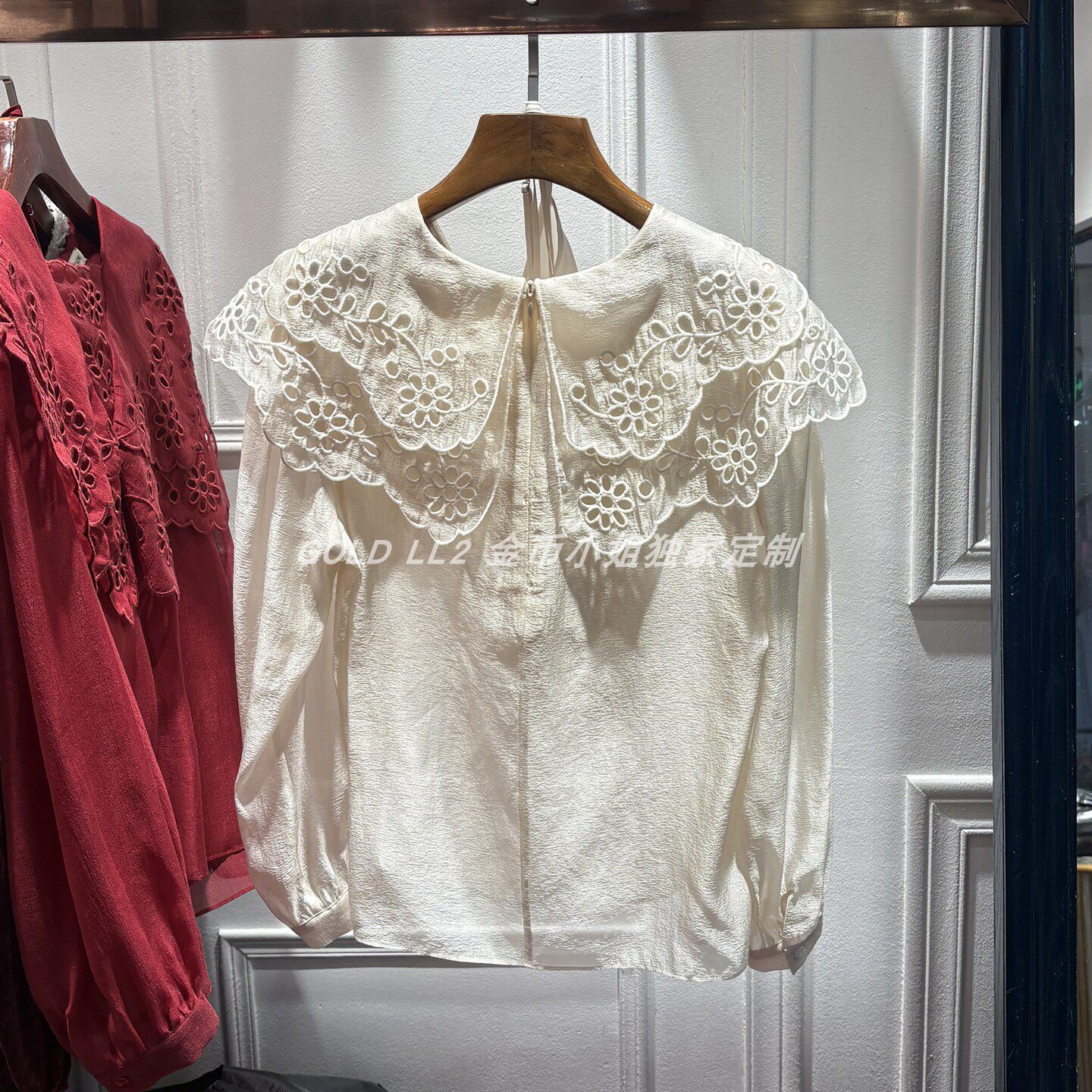 上衣仙 复古优雅V领镂空钩花宽松百搭泡泡袖 南油2026春秋新品 女装