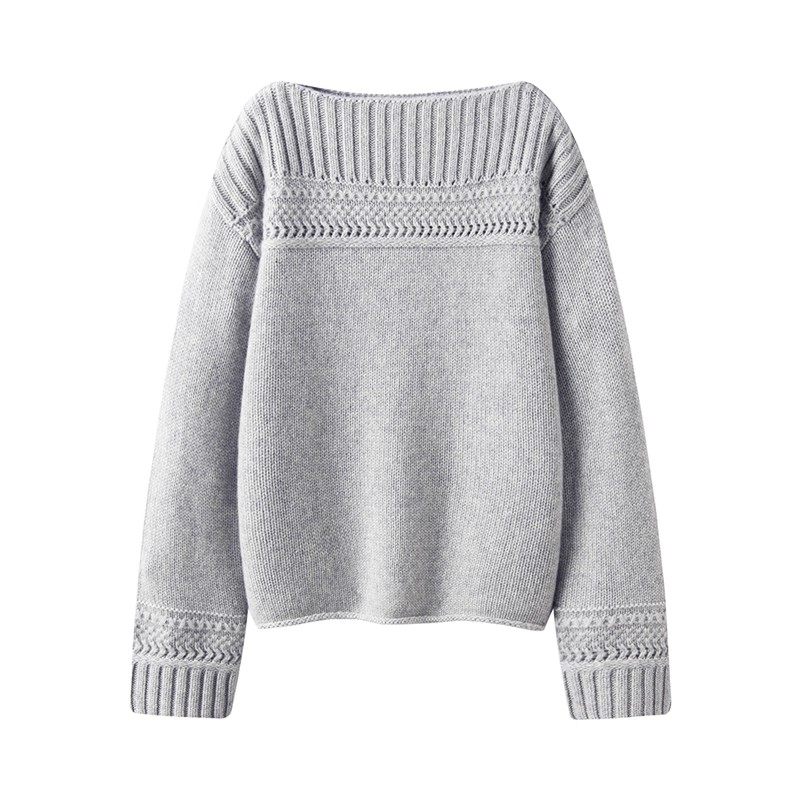 圆领100%纯山羊绒衫 灰色宽松打底上衣 女毛衣秋冬假两件拼色针织衫