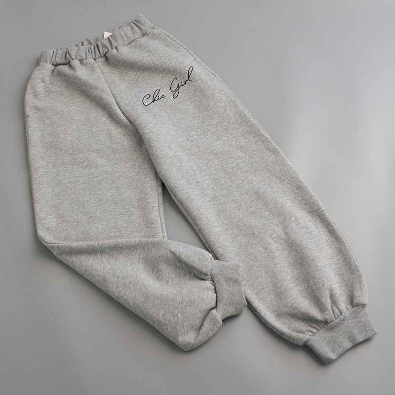 110 刺绣薄绒长裤 160女童 2025中大童宽松休闲运动裤 19147童加绒裤