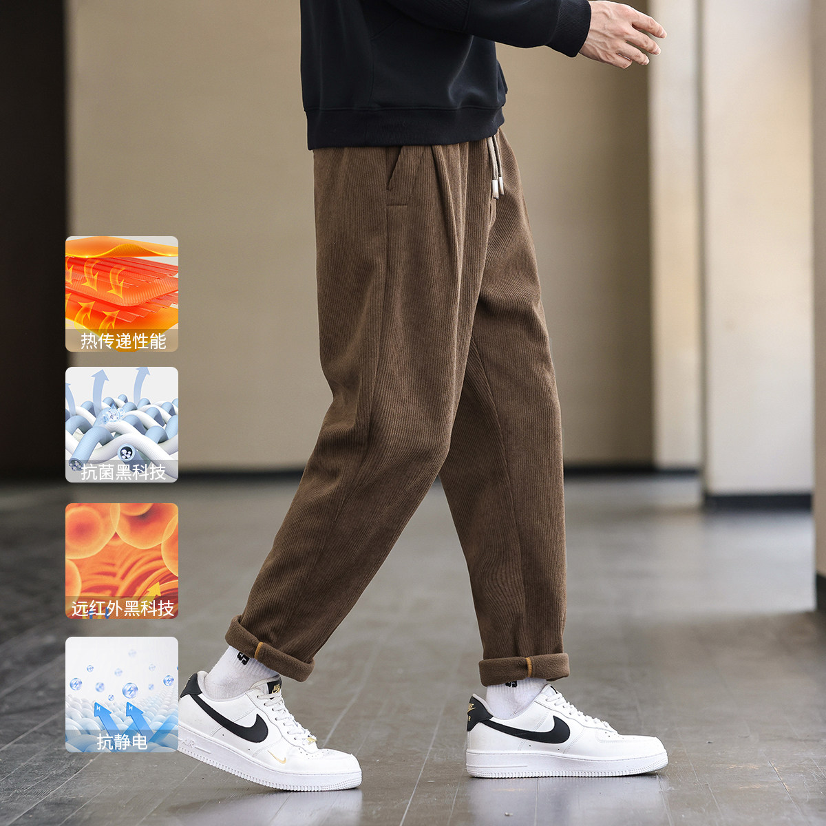 子冬加厚男防风直筒长裤 男裤 男士 爸爸休闲裤 软壳运动裤 鸿星尔克裤